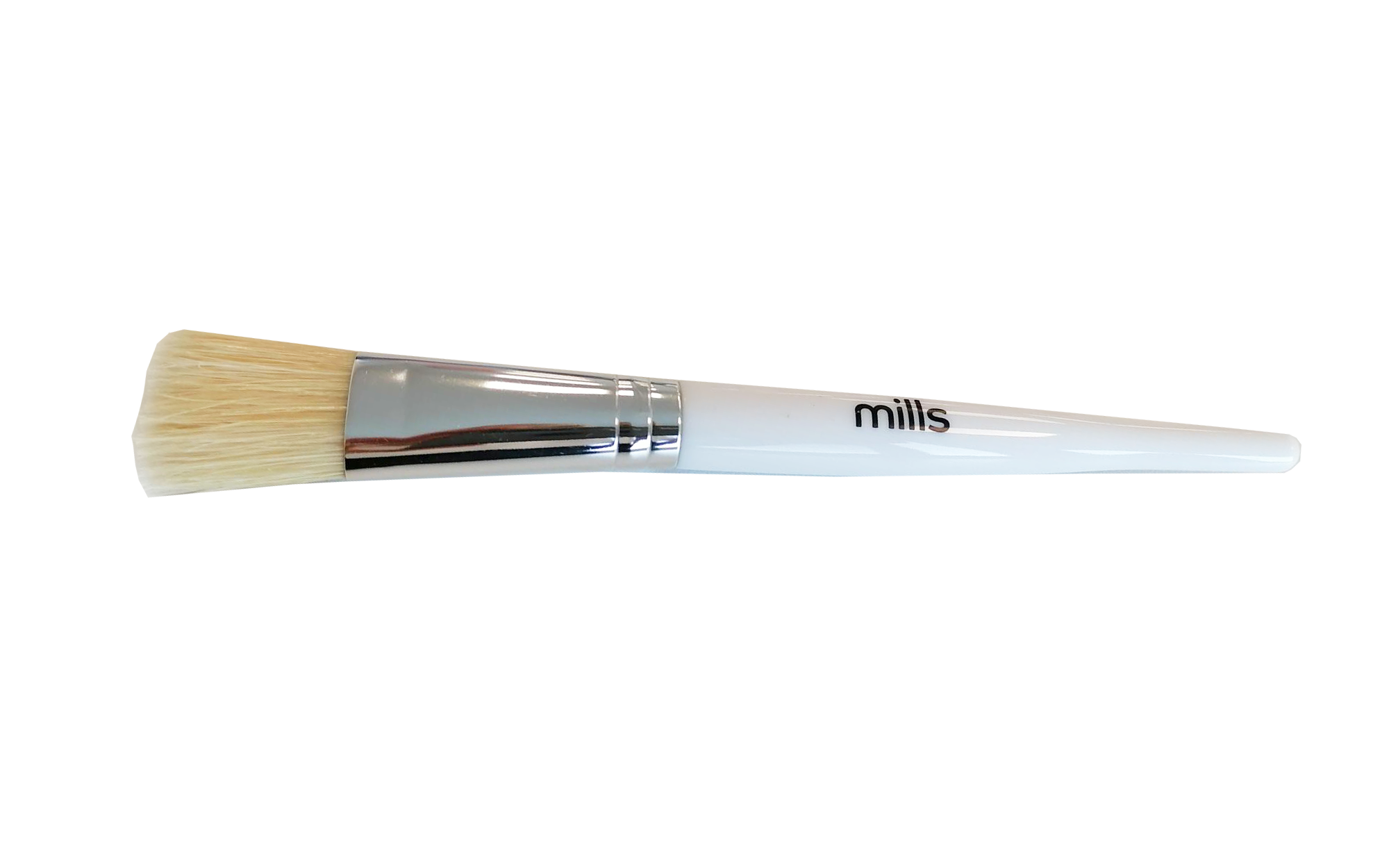 Mills-sarjan napakalla harjasosalla varustettu naamiosivellin. Soveltuu kuorinta-aineiden ja naamioiden levittämiseen iholle. Harjasosa voidaan desinfioida. Laadukasta luonnonkarvaa.