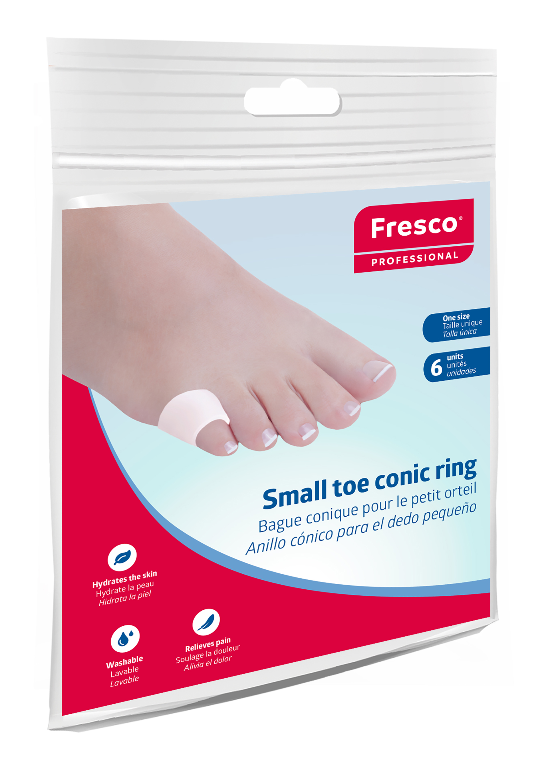 Ohut, joustava geelisuoja soveltuu etenkin 5. varpaan ulkoreunan suojaamiseen. Geelisuoja voi pestä käsin haalealla vedellä ja käyttää uudelleen. Mukautuu hyvin iholle. Pakkauksessa 6 kpl. Valmistaja Fresco.
